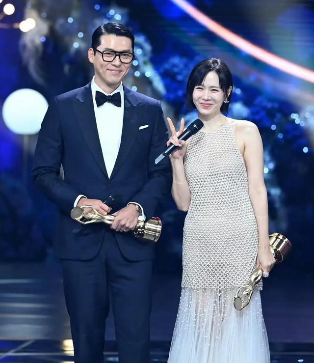 俩人结婚多年,但很少同框。上一次公开同框,还是五年前,两个人一起参加百想大赏的颁奖典礼。这一次俩人一前一后走红毯。孙艺珍剪了短发,穿了一件水晶露背礼服,造型不如以前出彩,全靠颜值撑着。